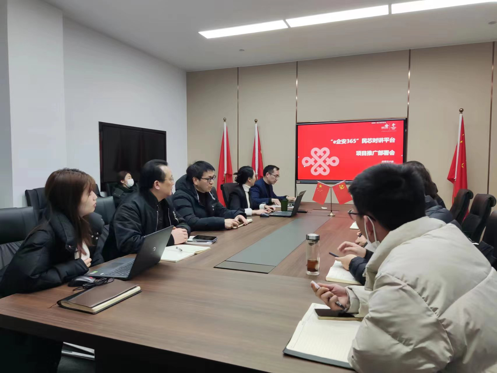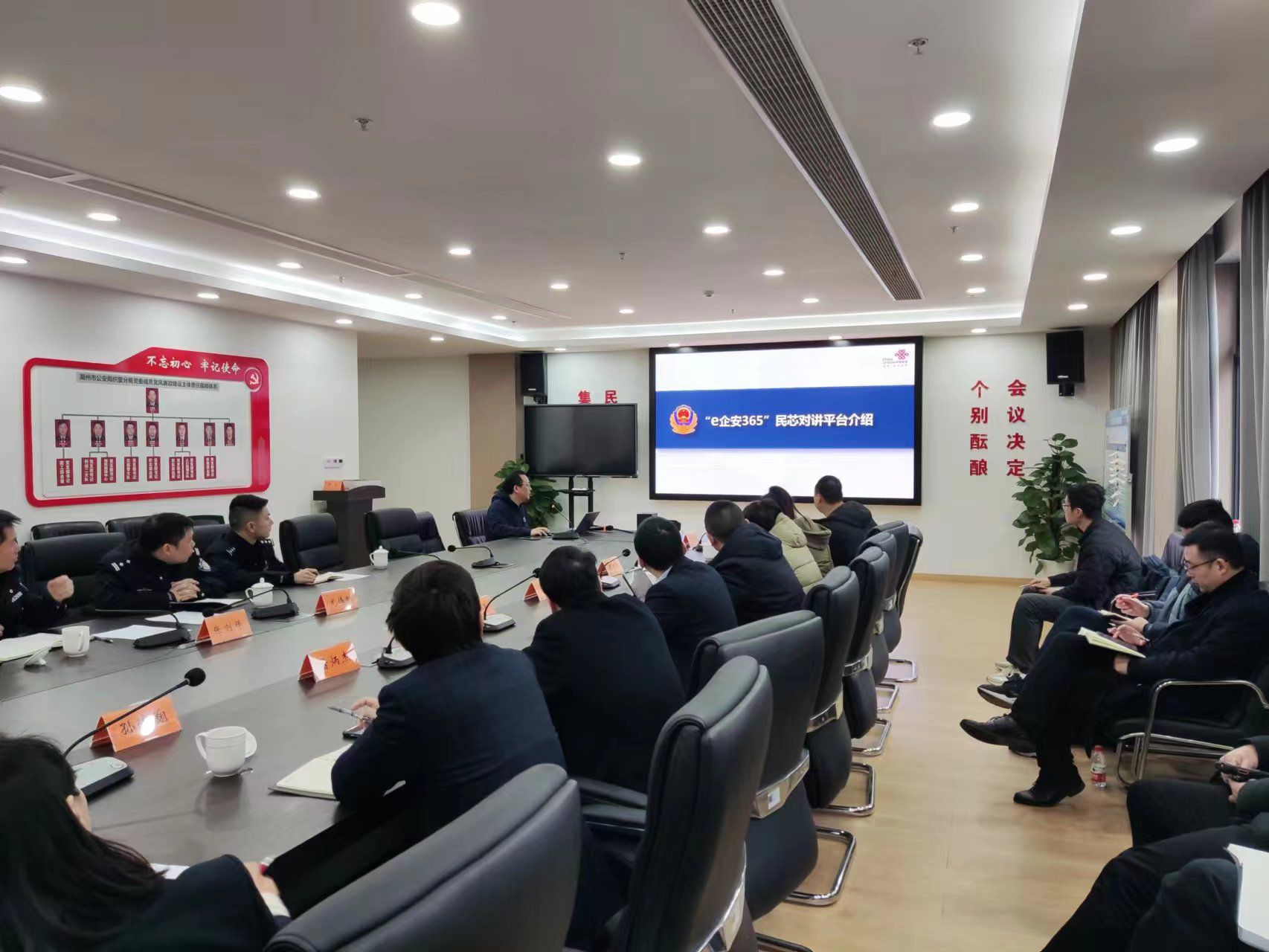 海高思市場團(tuán)隊(duì)與湖州市聯(lián)通召開針對(duì)“e企安365”民芯對(duì)講平臺(tái)項(xiàng)目的推廣部署會(huì)。